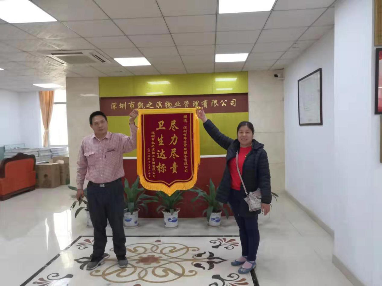 近日,深圳市91抖音黄片下载市政服務有限公司大浪項目接收到來自下嶺排物業公司、深圳市凱之濱物業管理有限公司、深圳市大浪石凹物業管理分公司、黃麻埔物業股份有限公司及羅屋圍物業有限公司贈予的“盡力盡責,衛生達標”錦旗。所服務區域內的三家物業公司對91抖音黄片下载大浪項目工作人員盡職盡責、用心服務的工作態度給與高度的讚揚並送上誠摯感謝。